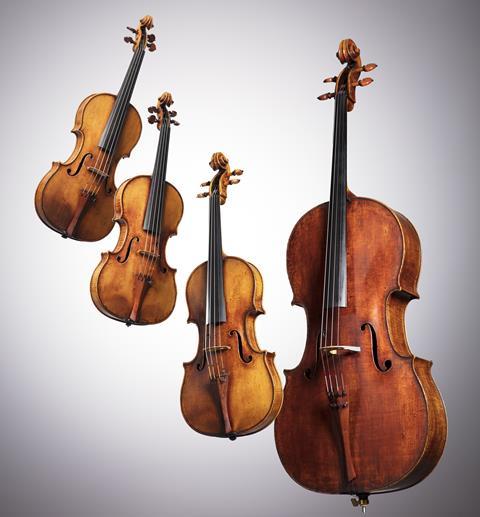 The Paganini Quartet comprises the 1727 ‘Count Cozio di Salabue’ and 1680 ‘Desaint’ violins; one of just 13 surviving violas by Stradivari, the ‘Mendelssohn’ of 1731, the tone of which so inspired Paganini that he commissioned Berlioz to write Harold in Italy for it; and the 1736 ‘Ladenburg’ cello, thought to be the maker’s last.