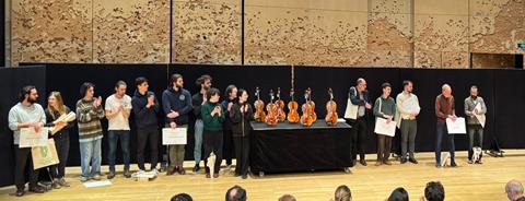 The luthiers’ jury comprised Jonathan Marolle, Ibiza Avalos and Riccardo Angeloni, while the players’ jury was made up of Pauline Sachse, Miguel da Silva and Ana Bela Chaves. A total of 63 makers submitted instruments for the competition, which were examined, played and evaluated over three days. The 15 highest-rated instruments were then played by members of the Orchestre de Paris in a public blind test, when the jury chose the final eight instruments. These were then played in a public concert for the grand final, also in a blind test, where the audience were also able to select their favourites by ballot.