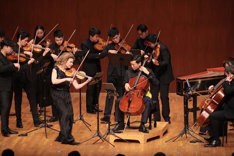 A nearly full house greeted the Musicus Fest finale, which began with Lee and Finnish violinist Minna Pensola teaming up with the Musicus Soloists Hong Kong to deliver a stellar rendition of Vivaldi’s Concerto for Violin and Cello in F major. Pensola’s cat-like movements – often crouching and stepping forward – were imbued with an intensity that was mirrored by Lee with equal panache. Lee’s lithe phrasing in the second movement (Largo) was sometimes overshadowed by Australian cellist Martin Smith but still effectively calmed the mood before the scintillating Allegro, in which Pensola and Lee echoed each other with wild runs.